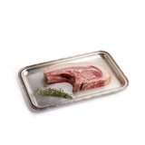 Raw Western Plain Pork Tomahawk (450g), complemented by rich bone marrow potato purée and market salad on the side.